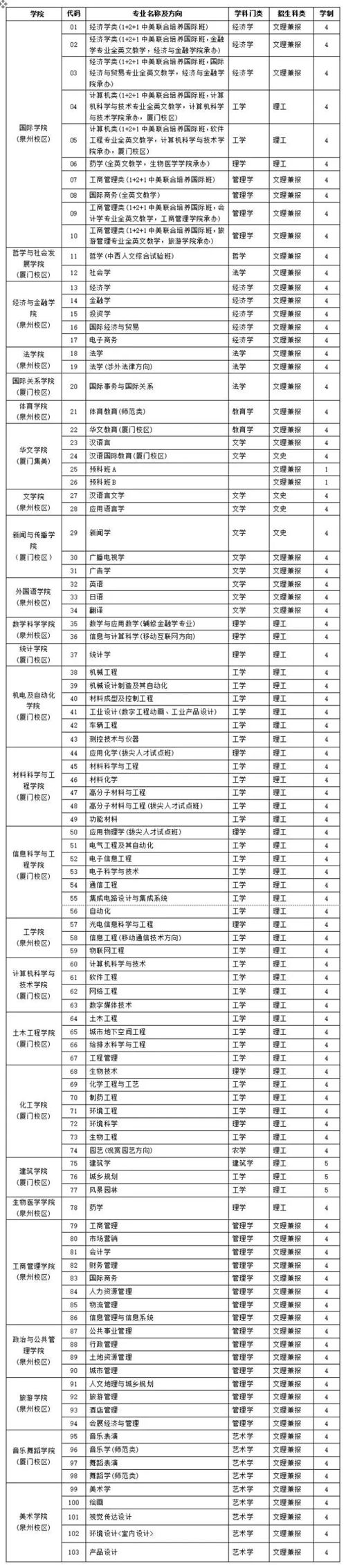 本科招生专业一览表